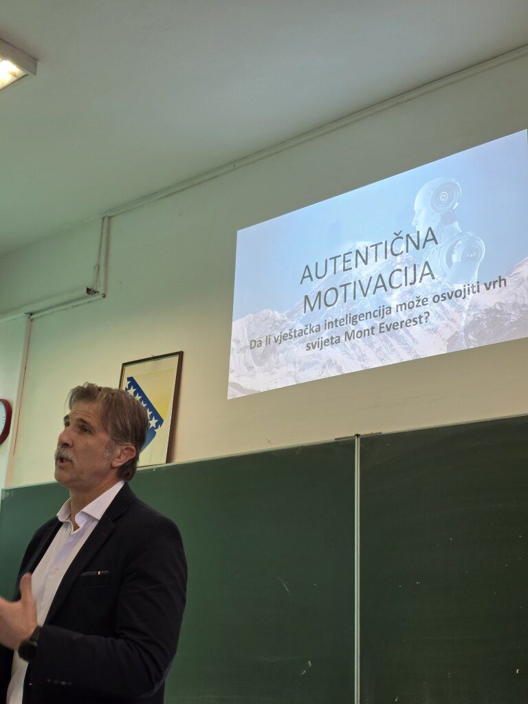 U okviru manifestacije STUFEK 2026 na Filozofskom fakultetu Univerziteta u Zenici u četvrtak, 09. 04., održano je izuzetno inspirativno predavanje Tomislava Cvitanušića pod nazivom „Autentična motivacija: Da li vještačka inteligencija može osvojiti vrh svijeta – Mont Everest?“.