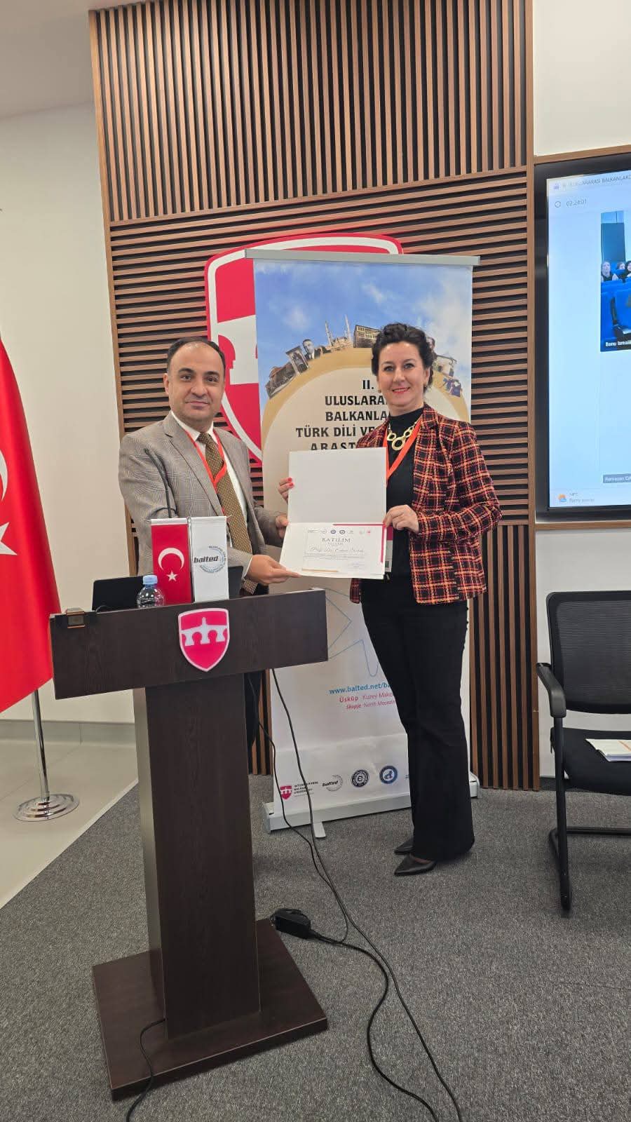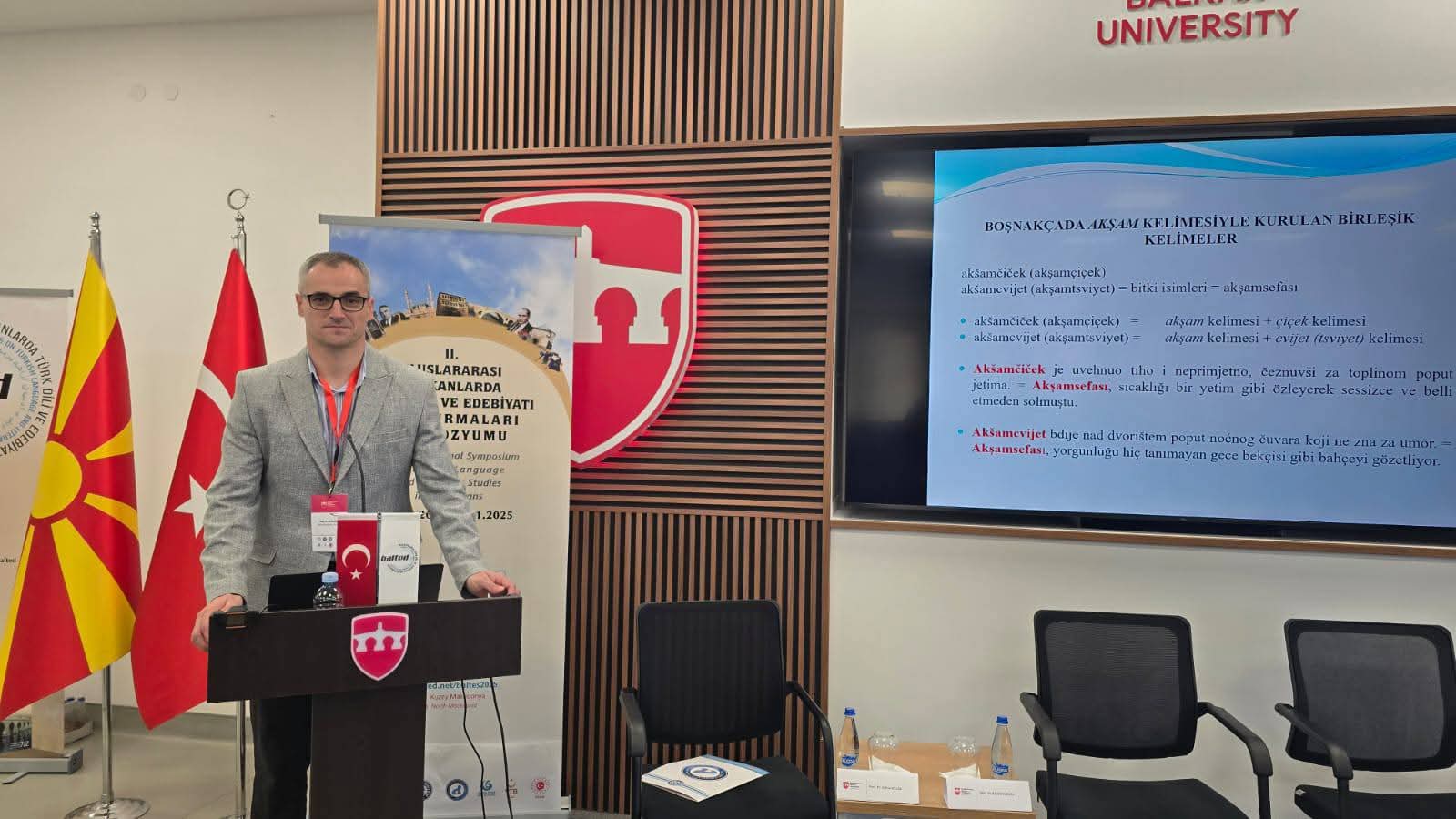 In the period from 30. 10. 2025. to 1. 11. 2025. the Second International Scientific Symposium "Research of Turkish Language and Turkish Literature in the Balkans" will be held in Skopje. The Head of the Department of Turkish Language and Literature of the Faculty of Philosophy of the University of Zenica, Prof. Dr. Edina Solak, moderated the first section at the aforementioned symposium, within which she co-authored with Assoc. Prof. Dr. Mirza Bašić, a scientific paper entitled "An Assessment of the Use of the Evening Language in Boşnakçadaki". We extend our sincere congratulations to Professor Solak and Professor Bašić on their successful participation in yet another international scientific symposium, with the hope that they will continue to represent our study program and our university in the best possible way on the international scientific scene in the future.