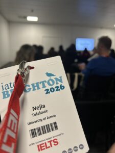 USPJEH STUDENATA SPEJK 23. April 2026. English language and literature, Faculty S ponosom vas izvještavamo o učešću naše studentice Nejle Telalović na međunarodnoj konferenciji IELTS u Brightonu kao rezultat osvajanja prvog mjesta na takmičenju SPARK 2 u organizaciji British Council Sarajevo!