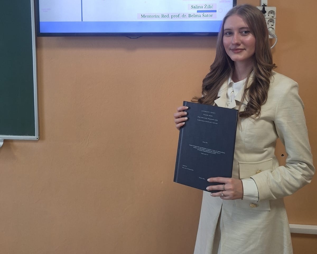 Dana 27. marta 2026. godine, na Filozofskom fakultetu Univerziteta u Zenici, kandidatkinja Šejla Perenda uspješno je odbranila magistarski rad pod naslovom Evaluating the Efficiency of Artificial Intelligence Platforms in Translating Phrasemes to and from English (Procjena efikasnosti platformi vještačke inteligencije…
