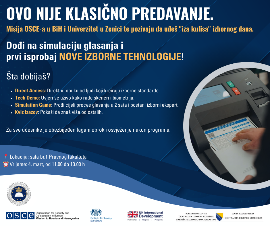 Predavanje i radionica će se održati 04.03.2026. godine na Pravnom fakultetu UNZE i namjenjena je prvenstveno studentima prve godine tj. studentima koji prvi put glasaju.