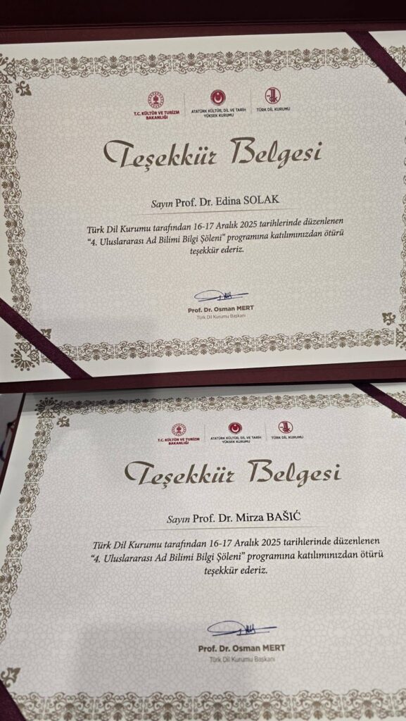 Upućujemo iskrene čestitke profesorici Solak i profesoru Bašiću na uspješnom učešću na još jednom međunarodnom naučnom simpoziju uz želju da i u budućnosti nastave na najbolji način predstavljati naš studijski program i naš univerzitet na međunarodnoj naučnoj sceni.