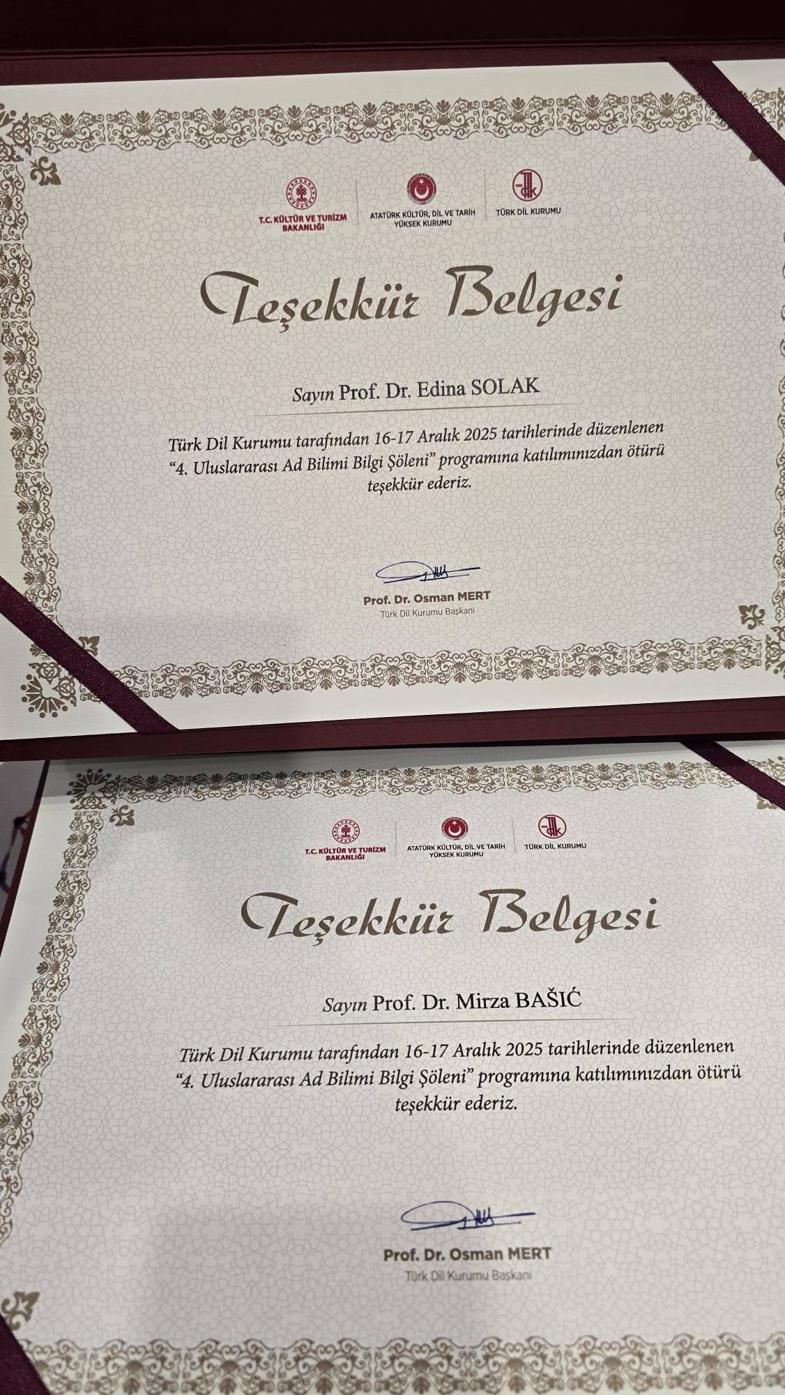 Na međunarodnom simpoziju Ad Bilimi Bilgi Şöleni u Ankari prof. dr. Edina Solak i vanr. prof. dr. Mirza Bašić aktivno su učestvovali predstavljajući Univerzitet u Zenici na visokom akademskom nivou. Svojim naučnim radovima i izlaganjima dostojno su predstavili Univerzitet potvrdivši njegov ugled i prepoznatljivost u međunarodnim akademskim krugovima.